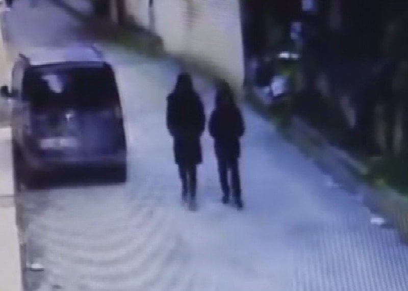 Güvenlik kamerası görüntülerinde sokak üzerinden geçen annenin, yanındaki evladına telefonu çaldırdığı anlar güvenlik kamerasına yansımıştı.