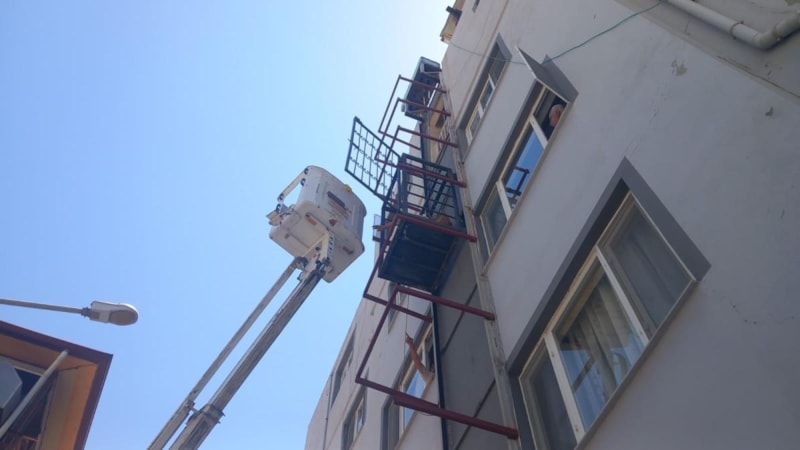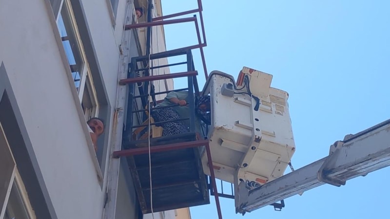 Samandağ ilçesinde bir binanın dış cephesindeki asansörde mahsur kalan 80 yaşındaki yaşlı kadını itfaiye ekipleri vinç yardımı ile kurtardı.