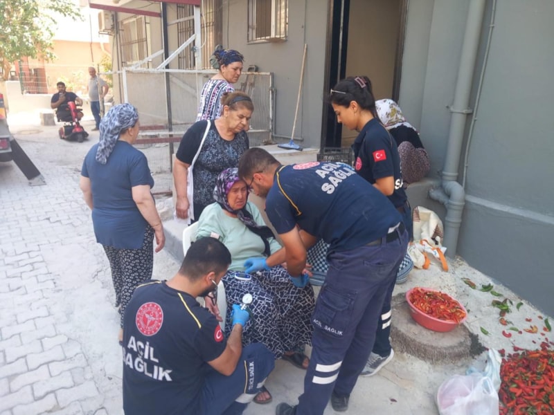 Ekiplerin bölgeye intikali esnasında sokaktaki vatandaşlarla sohbet eden kadın, kurtarılmasıyla rahat bir nefes aldı.