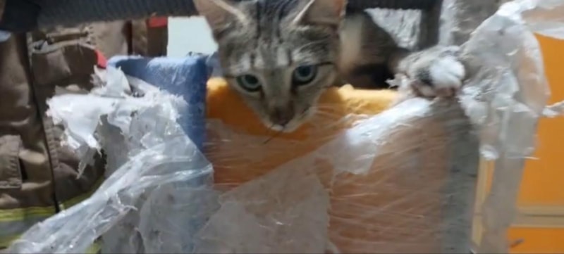 Arsuz ilçesinde balık misinasına dolanan ve iğne batmasıyla yaralanan kedi, itfaiye ekipleri tarafından kurtarıldı.