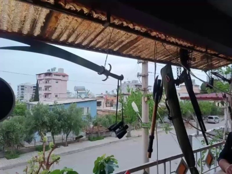 Hatay’da sıra dışı bir olay, görenleri şaşkına çevirdi. İskenderun ilçesinde bir evin balkonunda adeta çamaşır asar gibi silah ve kesici aletlerin sergilenmesi üzerine harekete geçen ekipler, olayla ilgili inceleme başlattı.