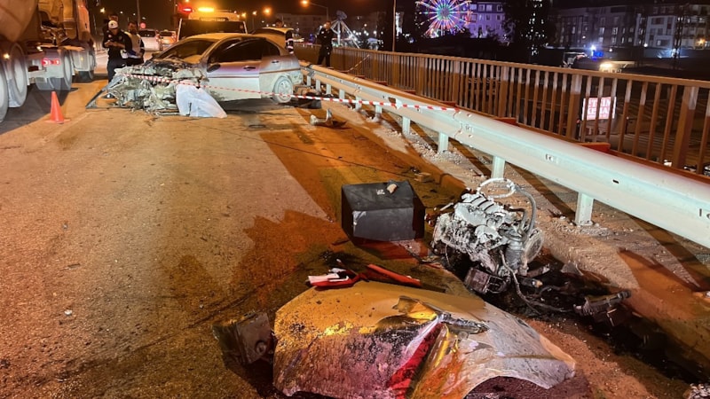 Kazadan hemen sonra motosikletli bir vatandaşın olay anını kayda aldığı görüntülerde, yolun ortasına savrulmuş motor ve araç aksamları dikkat çekti.