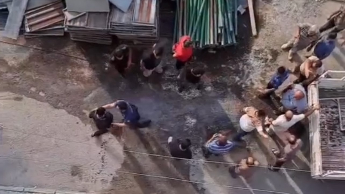 Polis havaya ateş açmasıyla kavga sona ererken, o anlar çevredeki bir vatandaşın cep telefonu kamerasına yansıdı.