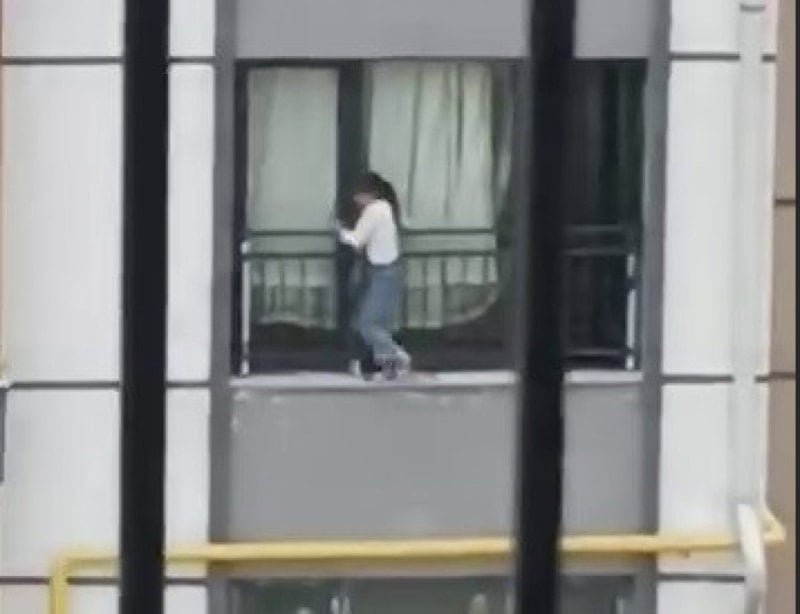 Sık sık çocuğun korku dolu hareketlerde bulunması üzerine çevredeki apartmanlarda yaşayanlar o anları cep telefonuyla görüntüledi.