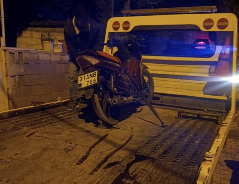 Motosiklet yediemin otoparkına çekilirken ayrıca şahıs hakkında trafik güvenliğini tehlikeye sokmak suçundan adli işlem yapıldı.