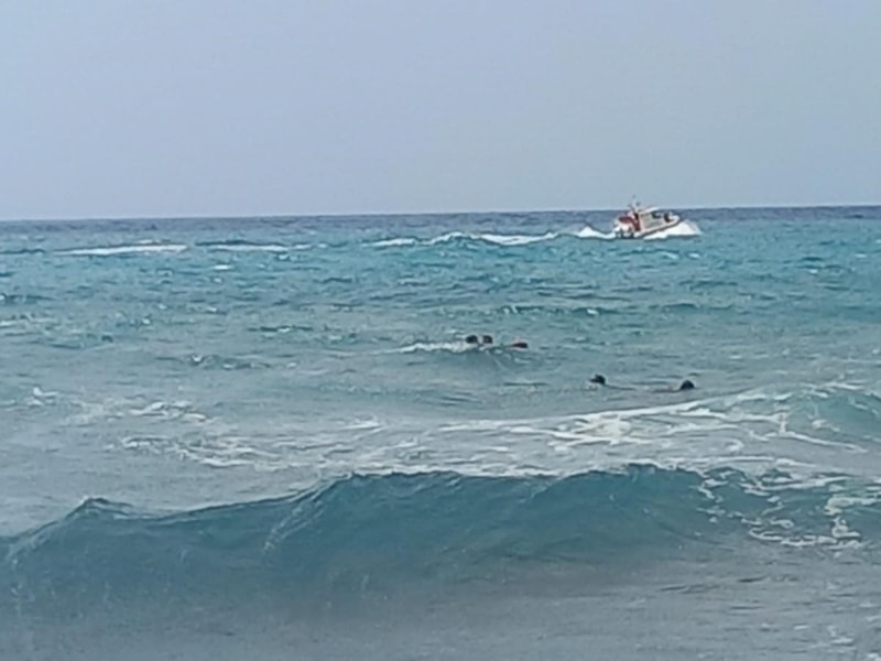 Hava sıcaklığının 40 dereceyi geçtiği Hatay'da serinlemek isteyen yabancı uyruklu 2 şahıs, Samandağ ilçesi Çevlik sahilinde denize girdi.