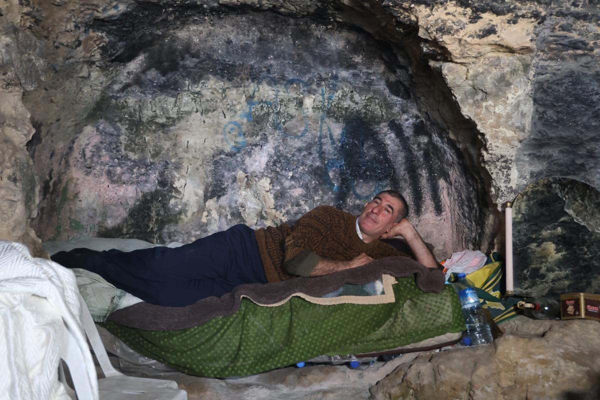 İzin vermeyince ben de mağaraya yerleştim, 2,5 yıldır mağarada yaşıyorum. Buraya geldiğimde eşyaları dizdim, yemekler yaptım. Çamaşırlarımı yıkıyorum. Suyumu dışarıdan taşıyarak mağaraya getiriyorum. Banyoyu burada dışarıda yapıyorum.