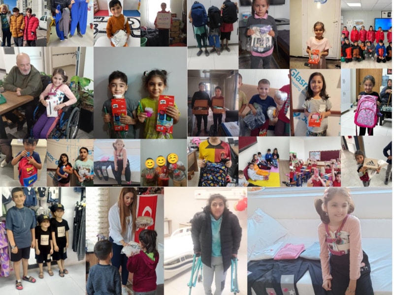 Öz, tedavi gördüğü hastanedeki personel ve arkadaşlarının yardımıyla başladığı bağış kampanyaları kapsamında topladığı kırtasiye malzemelerini ve kıyafetleri, deprem bölgesindeki çocuklara ulaştırdı.
