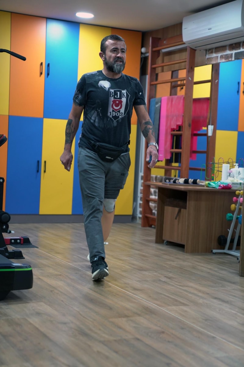 Murat Akkoç’un depremde kızı hariç tüm yakınlarını kaybettiğini hatırlatan Fizyoterapist Renim Elşeyh, “Bu hayatta tek kalan kızını en iyi şekilde yetiştirmeyi hedefleyen Murat Bey, ampüte olduktan sonra bile bu hedeften şaşmayarak bizim verdiğimiz tüm egzersizlere uyarak tez zamanında dengesini tuttu ve protezle düzgün bir şekilde yürüyebildi.” dedi.