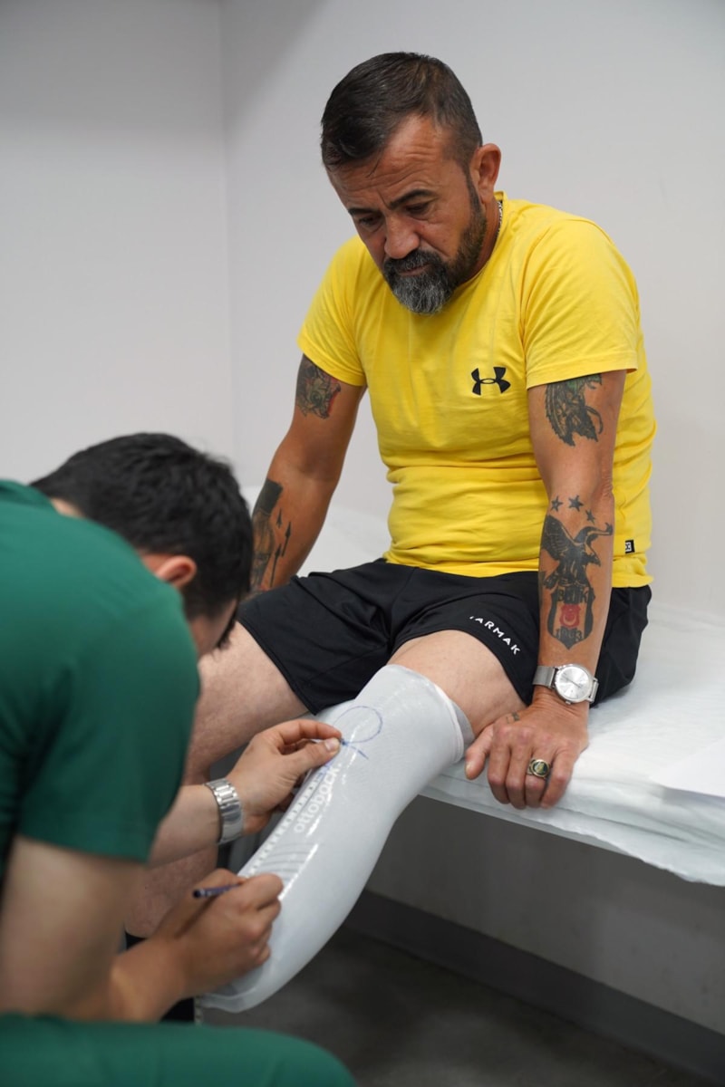 Protez Ortez Teknikeri Samet Yılmazer ise Murat Akkoç’ın dernek merkezine ilk geldiğinde kendisindeki o üzüntüyü hissettiklerini vurgulayarak, “Çünkü Murat Bey gerçekten aktif bir hastaydı. Hastalığından önce aslında çok aktif spor yapan bir bireydi. Bunun için Murat Bey'e buna yönelik biz protez seçmeliydik. Kendisiyle gereken görüşmeleri ve muayeneleri yaptık. Daha sonra ölçü aşamasına geçtik ve ölçümüzü aldık. Gereken şekilde uygulama süreçlerini işledik. Kurulumu gerçekleştirdik. Bir tez soketi hazırladık.” diye konuştu.