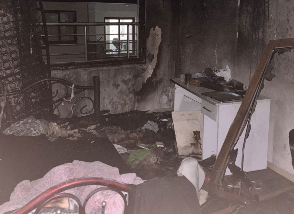 Çocuklar birlikte yangın esnasında evdeydik. Oğlum yangın var anne dedi. Geldiğimizde kanepeler ve perdeler yanıyordu. Birden alevler yükselince müdahale edemedik. İtfaiye ekiplerine haber ettik. Ekipler de gelip müdahale ettiler. Yangını fark etmedik. Küçük oğlum koku var, yangın çıktı galiba diye söyledi. Geldiğimizde ise alevlerle karşılaştık. Apartman girişine inip yardım istedim, yardım edin diye bağırdım. Komşular da itfaiye ekiplerine haber verdiler.