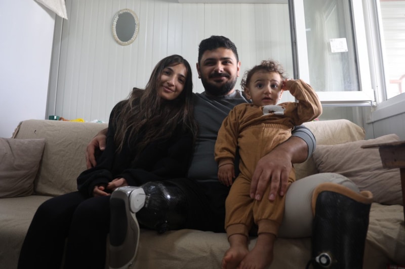 Hatay'da depremde 2 bacağı ampute olan ve protez bacakları sayesinde yeniden yaşama tutunan 22 yaşındaki Emre Yüksek, asrın felaketi sonrasında evlenerek evlat sahibi oldu.
