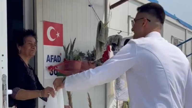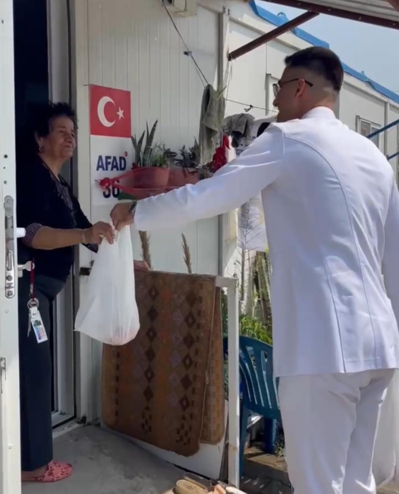 İskenderun ilçesinde üniversite eğitimi alan Ramazan Altun, mezuniyetiyle birlikte adadığı kurbanı kestirerek konteyner kentte dağıttı. Altun, 6 Şubat depreminde yıkılan evinin enkazından sağ çıkmıştı.