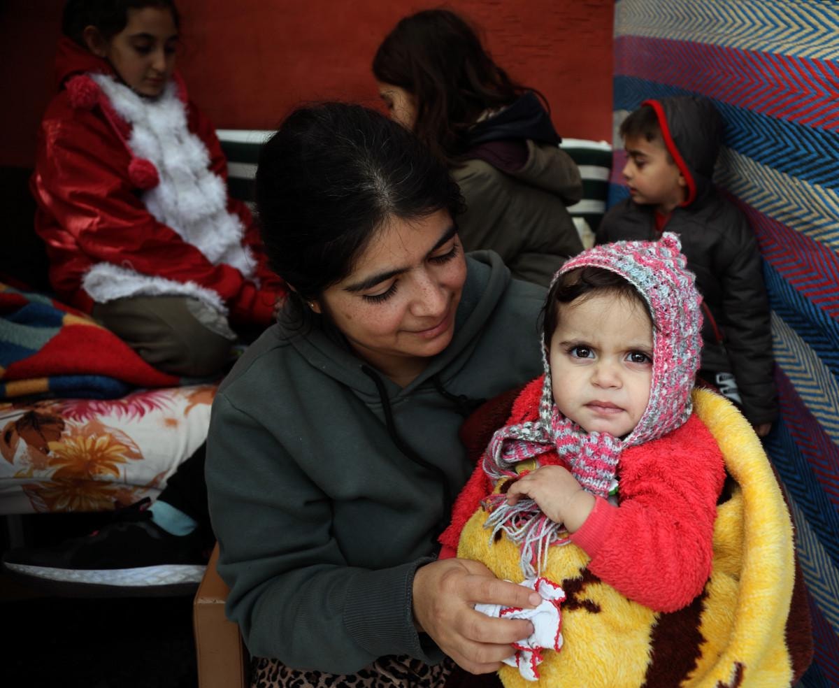 Barış, "Ayakta durmakta zorlandık, kendimizi sokağa attık. Sonra da evimizi akrabalarımıza, kızımın arkadaşı ve Rus annesine açtık. Elimden geleni yaptım, fakat gücüm yetmedi. Yaklaşık 40 kişi var. Battaniye eksiğimiz var, çadır da istiyoruz, yiyeceği geçtik. Suyumuz yok, elektrik ara ara geliyor. İmkanlarımız çok kötü. Yüzde 99'u akrabam ve tek sığındığımız yer burası. Onların evleri kullanılmaz halde, 3 gün oldu. İlk önce ısınmaya yönelik yorgan battaniye çadır istiyoruz. 4 yaşlımız tansiyon hastası." ifadelerini kullandı.