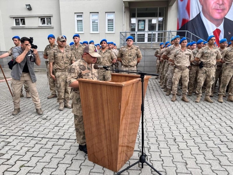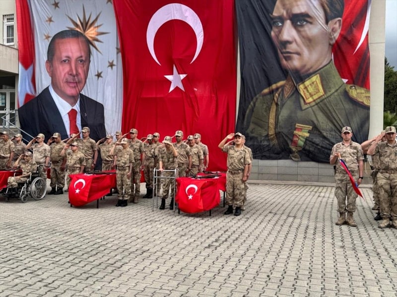 Hatay'ın Dörtyol ilçesinde aileleriyle Kara Hasan Paşa Kışlası'na gelen 14 engelli genç, saç tıraşı olup üniformalarını giymelerinin ardından eğitim alanına çıktı.