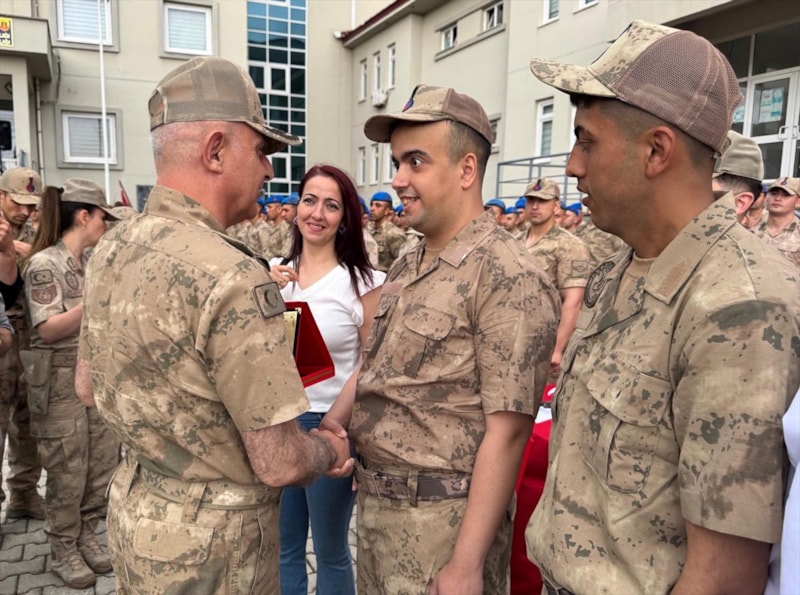 Gençlere bölük komutanı ve astsubay tarafından yanaşık düzen eğitimi verildi, asker selamı öğretildi.