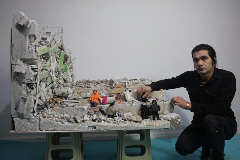 Depremde kardeşimi ve kuzenimi kaybettim. Depremde kardeşim hastanede görev yaparken enkaz altında kaldı. 10 gün boyunca enkaz altından çıkarmaya çalıştık ve başında kaldık. Dışarıdan gelen ekipler sayesinde yapılan çalışmayla kardeşimi 9'uncu günde cenazesini aldım. Deprem beni bayağı etkiledi. Deprem minyatürün yapımı ve figürler 3 ayımı aldı, bunun yanında yaşanılmış bütün olayları yapabiliyorum" ifadelerini kullandı.