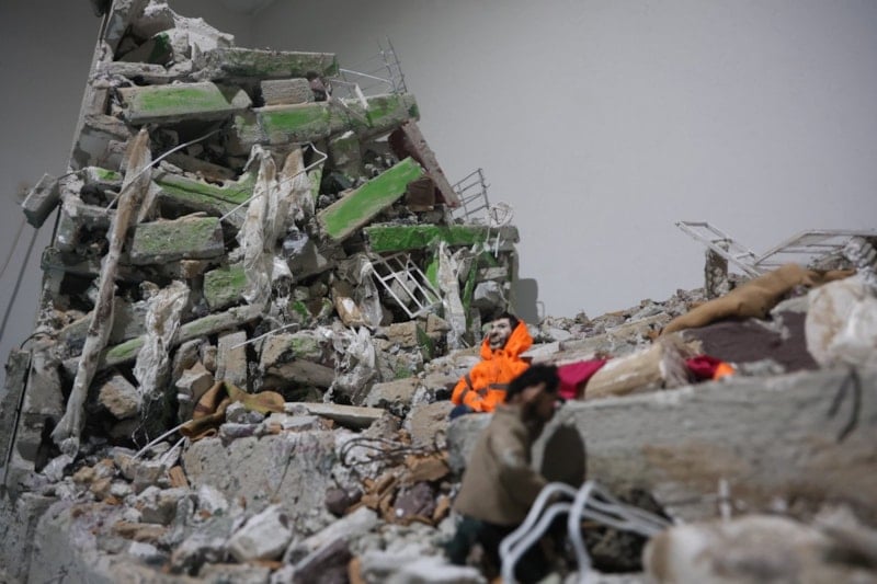 Asrın felaketinde yaşanmış olaylardan ve fotoğraflardan esinlenerek 3 ay içerisinde deprem minyatürü yapan Kocaman, çalışmasının tamamında atık malzemeleri kullandı.