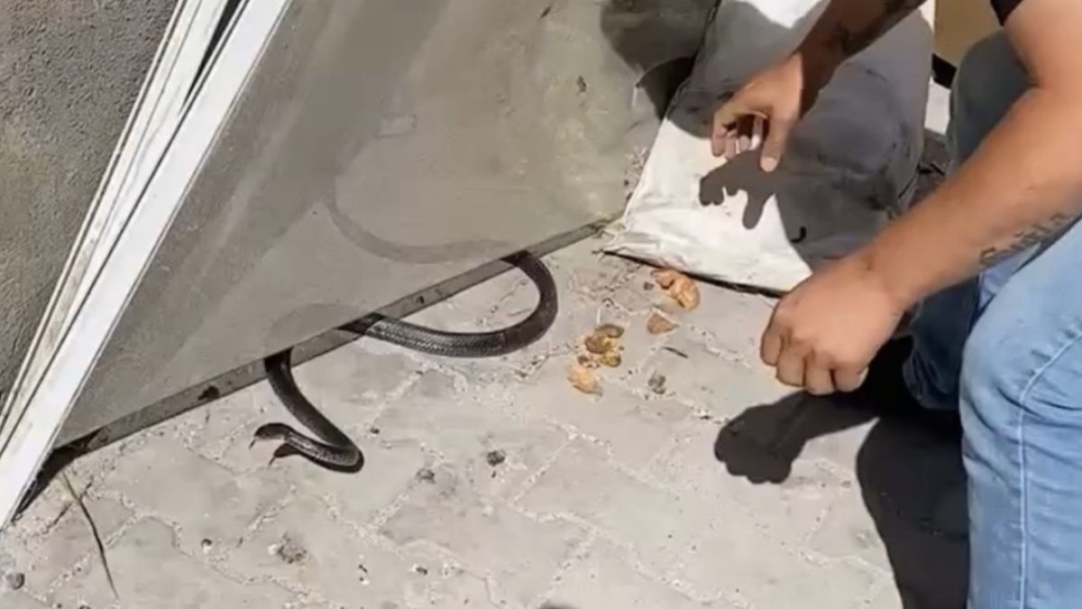 Hatay'ın Payas ilçesinde evine yılan giren vatandaşın yardım çağrısı üzerine bölgeye giden Yılancı Kemal, uzmanlıkla yılanı yakalamak istedi.