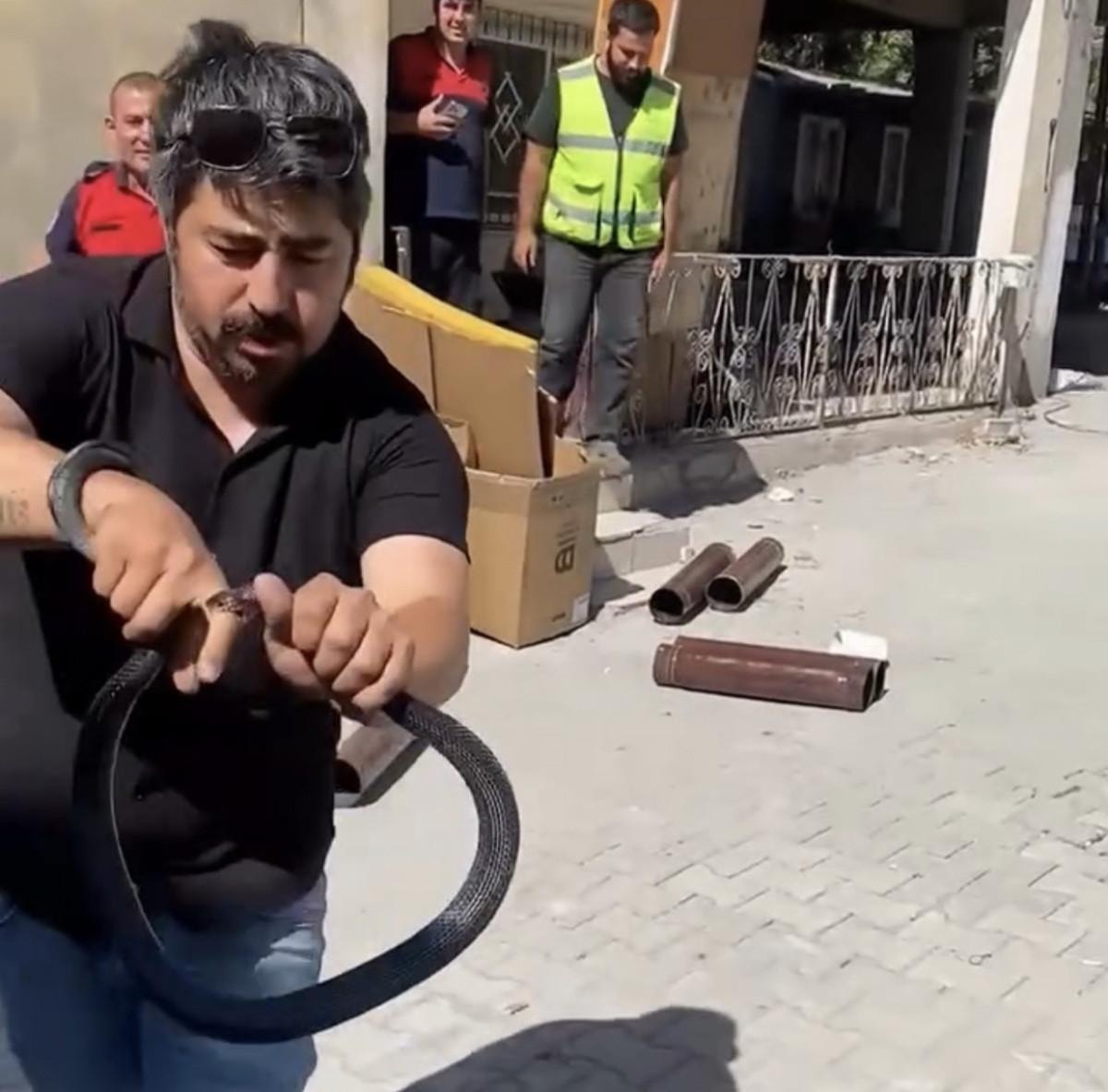 Müdahale esnasında 1 metrelik yılan Başer'in parmağını ısırdı.