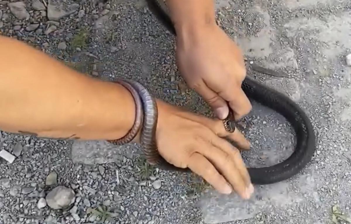 Yılan tarafından ısırılan Başer'in, o anlarda "Bırakın bir şey olmaz, hadi bırak hadi bırak" diyerek soğukkanlı tavrını koruduğu görülürken yılanı elinden zarar vermeden uzaklaştırdığı anlar, cep telefonuyla saniye saniye kaydedildi.