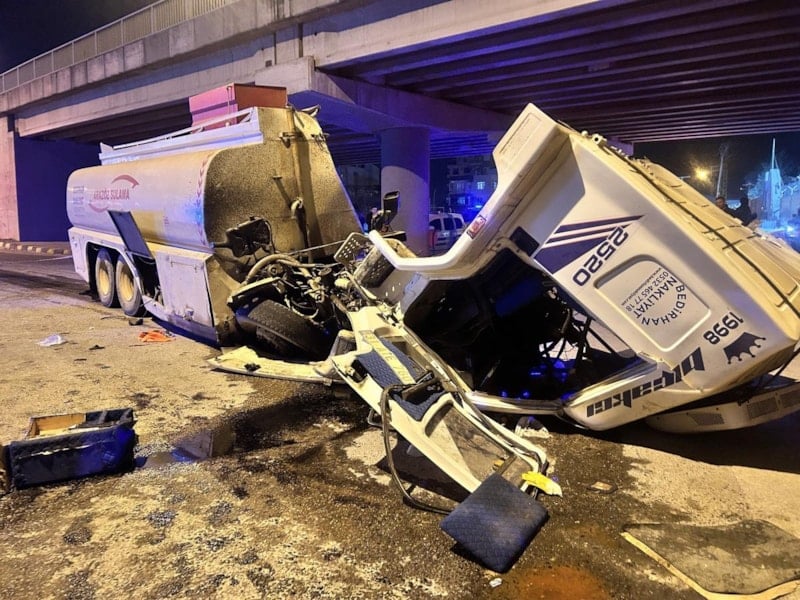İskenderun ilçesinde freninin patlaması sonucu önce otomobile sonra da üst geçit duvarına çarpan arazözün karıştığı kazada bir kişi öldü. Kaza anı ise kameraya yansıdı.