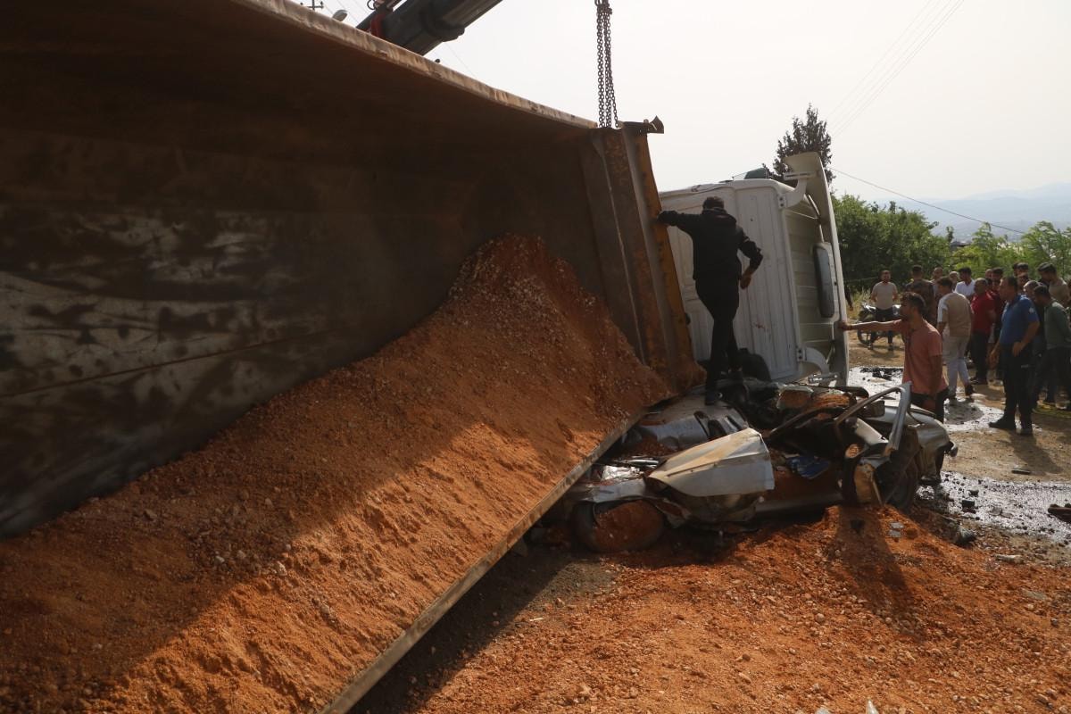Geçtiğimiz yıl Antakya - Altınözü yolu Narlıca Mahallesi mevkiinde sürücüsünün kontrolünü kaybettiği Mercedes Benz marka hafriyat kamyonu, Dibo Bayır'ın kullandığı Peuguet marka otomobilin üzerine devrilmişti.