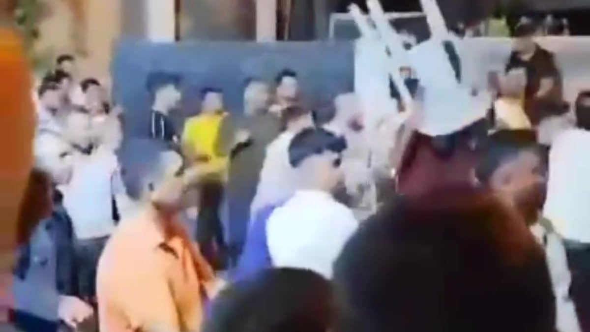 Olayda herhangi bir yaralanan olmazken düğünde sandalyelerin havada uçuştuğu anlar kameraya yansıdı.