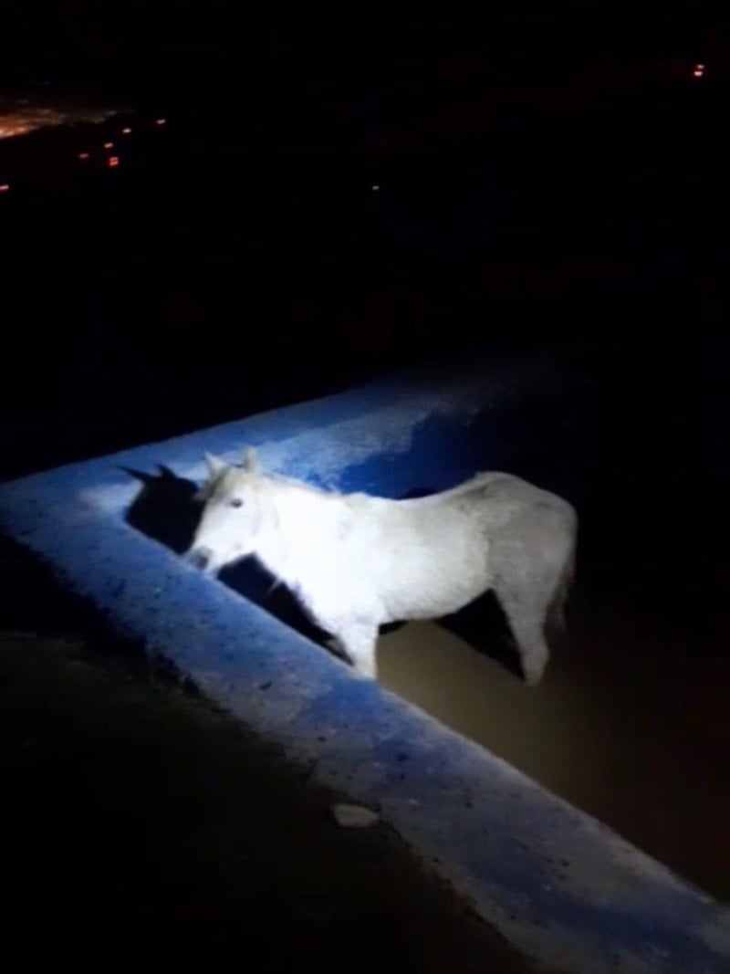 Hatay'ın Belen ilçesi Kıcı Mahallesi’nde, sulama havuzuna at düştü.