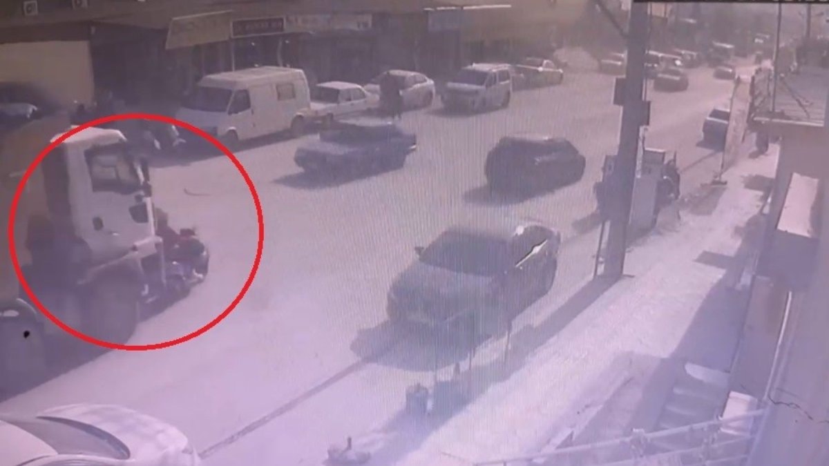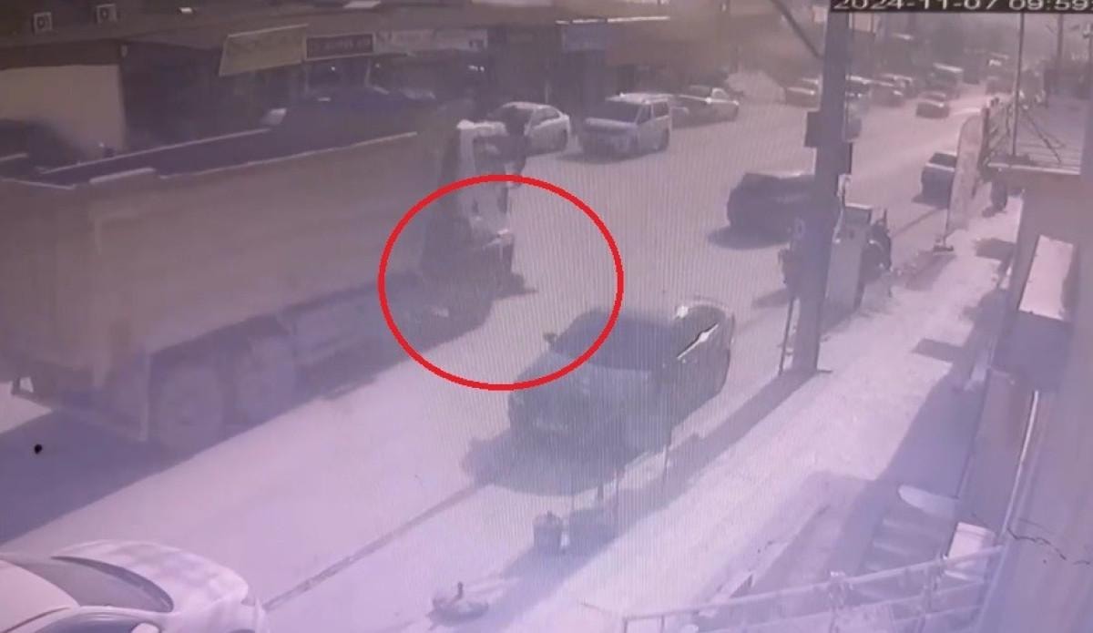 Hatay'ın Antakya ilçesi Akasya Mahallesi'nde yaşanan olayda, trafikte seyir halde olan hafriyat kamyonu, kör noktasına gelen motosiklet ile çarpıştı.