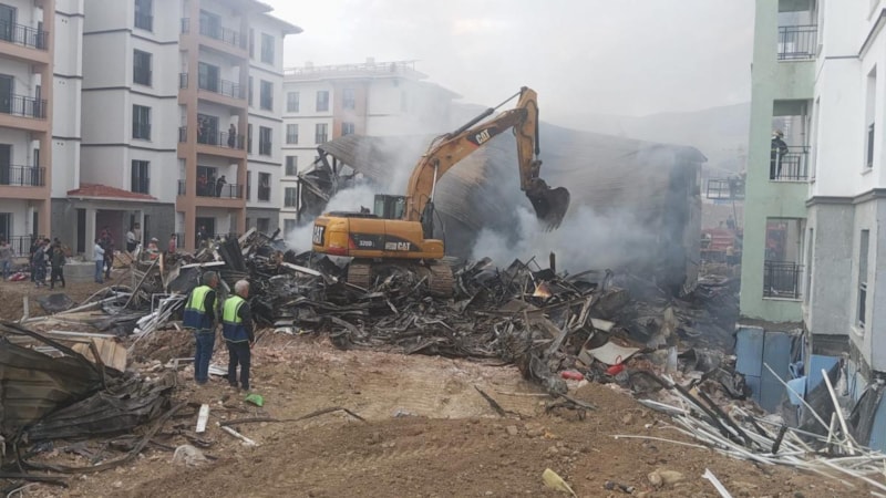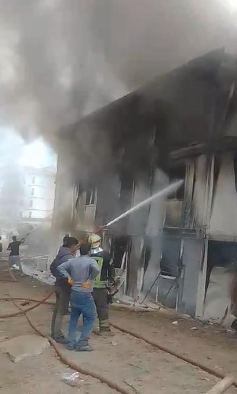 Hatay'ın Antakya ilçesine bağlı Dikmece Mahallesi'nde bulunan şantiye alanında işçilerin kaldığı konteynerde bilinmeyen bir nedenle yangın çıktı.
