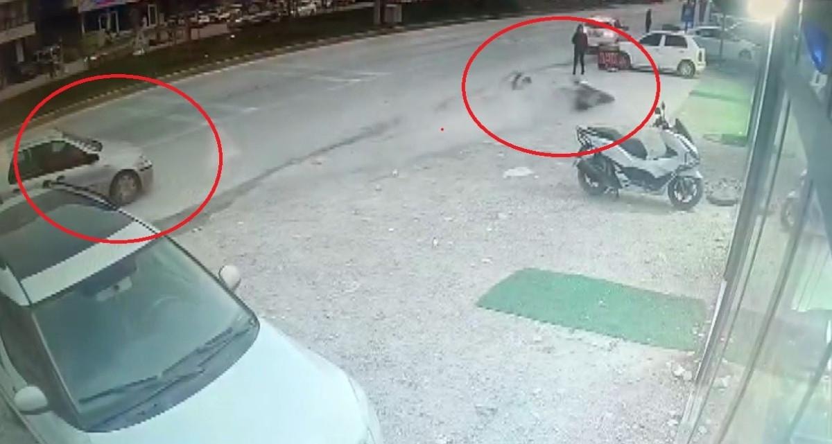 Motosiklet sürücüsünün yaralandığı feci kaza ise bölgede bulunan güvenlik kamerası tarafından kaydedildi