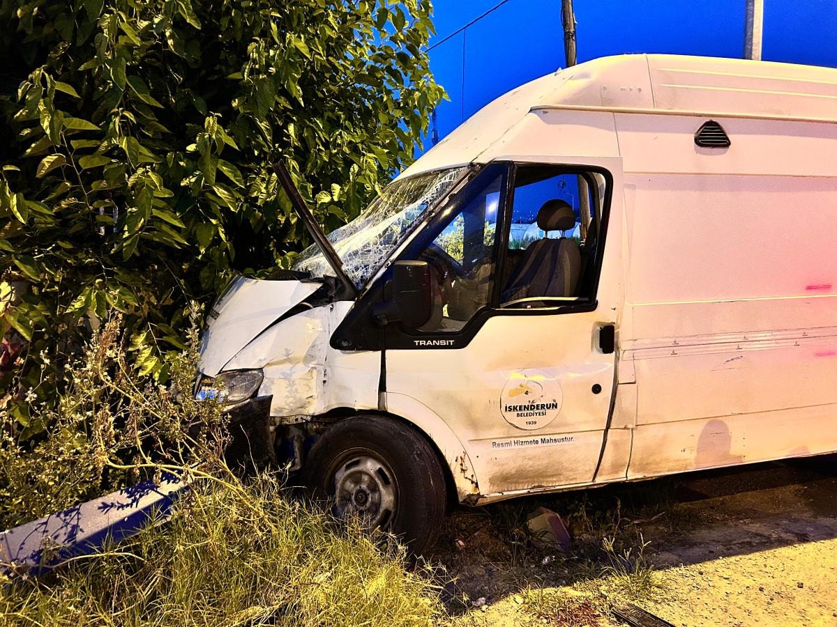 Hatay'ın İskenderun ilçesinde Emrullah A.'nın kullandığı minibüs, seyir halindeki şehirler arası yolcu otobüsü ile çarpıştı. Kazada, minibüs sürücüsü Emrullah A. yaralandı.