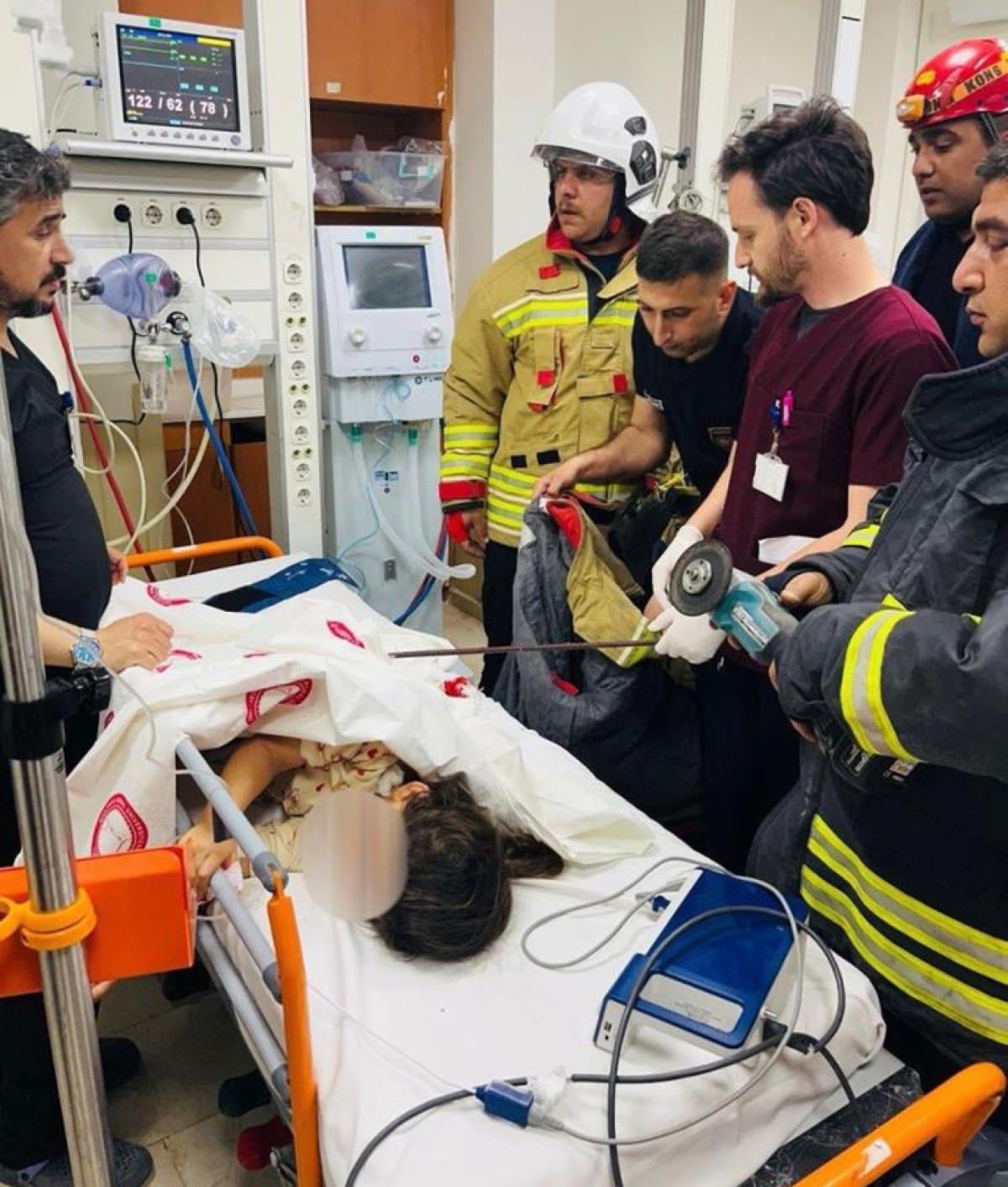 Çocuğun beline saplanan demir, itfaiye ekiplerinin yardımıyla çıkarıldı.