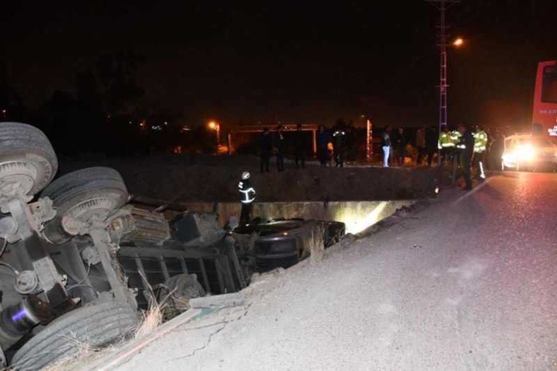 Hatay'ın Payas ilçesi Cumhuriyet Mahallesi'nde demir yüklü tır köprüden geçtiği esnada sürücüsünün direksiyon hakimiyetini kaybetmesiyle dereye uçtu.