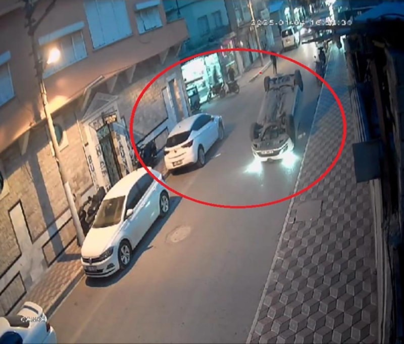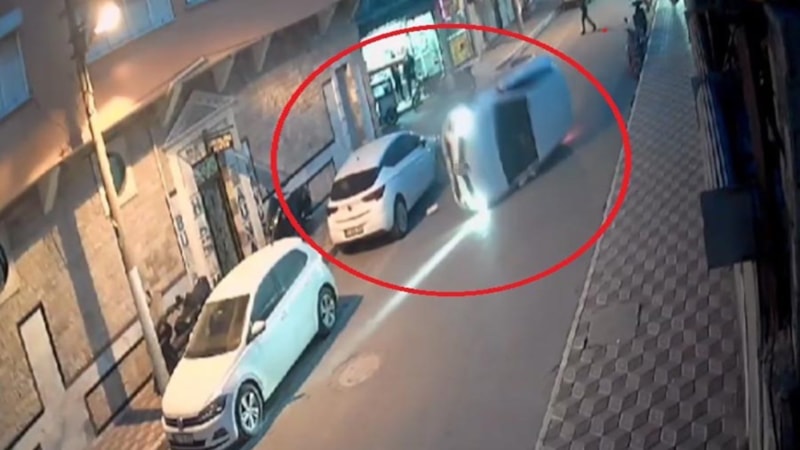 Park halindeki araca çarpıp takla atan otomobilin o anları, saniye saniye güvenlik kamerasına yansıdı.
