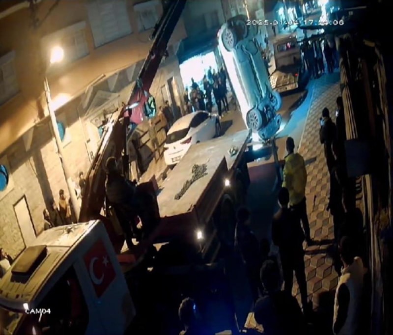 İskenderun ilçesinde park halinde olan araca çarpan otomobilin takla attığı anlar, güvenlik kamerasına yansıdı.