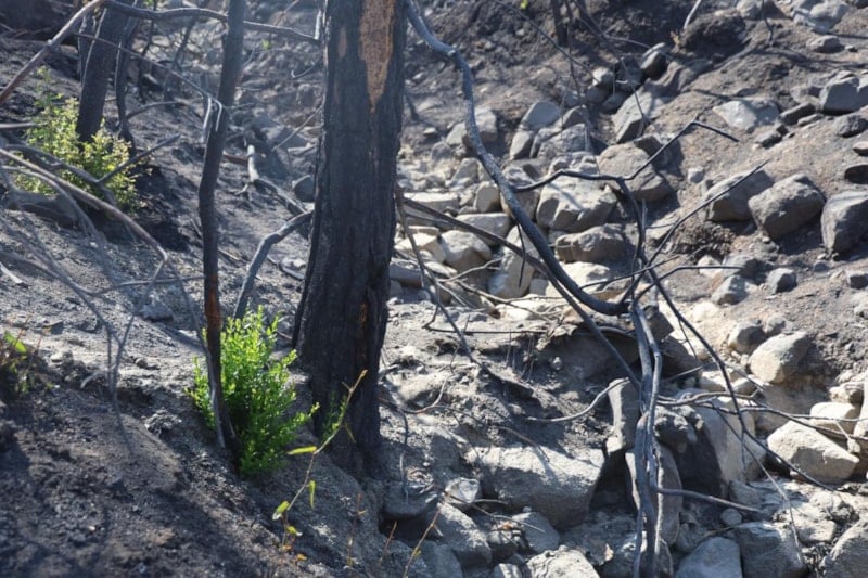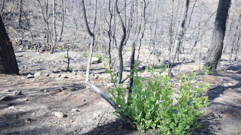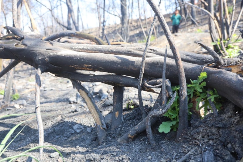 Yağmur yağdığı zaman tekrardan yeşerme ihtimali daha fazla artacak. Biz buraya geldiğimizde yeşeren ağaçları gördük. Yağmur yağsa umarım bu ağaçlar küllerinden temizlenmiş olur hem de doğa eski haline dönmüş olur. Yeşeren fidanlar yanan ağaçların köklerinden çıkıyor.