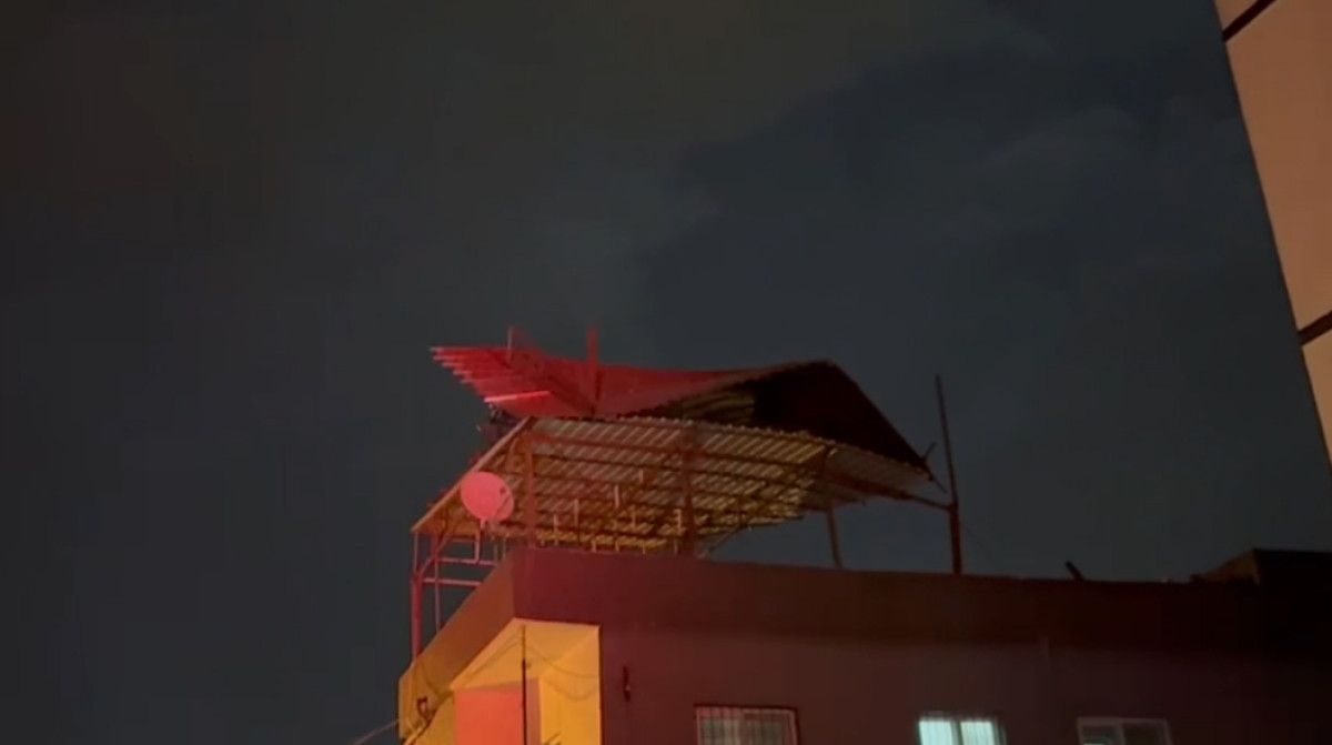 Ayrıca Arpaderesi Mahallesi'nde, bir binanın çatısı uçarak komşu evin üzerine düştü.