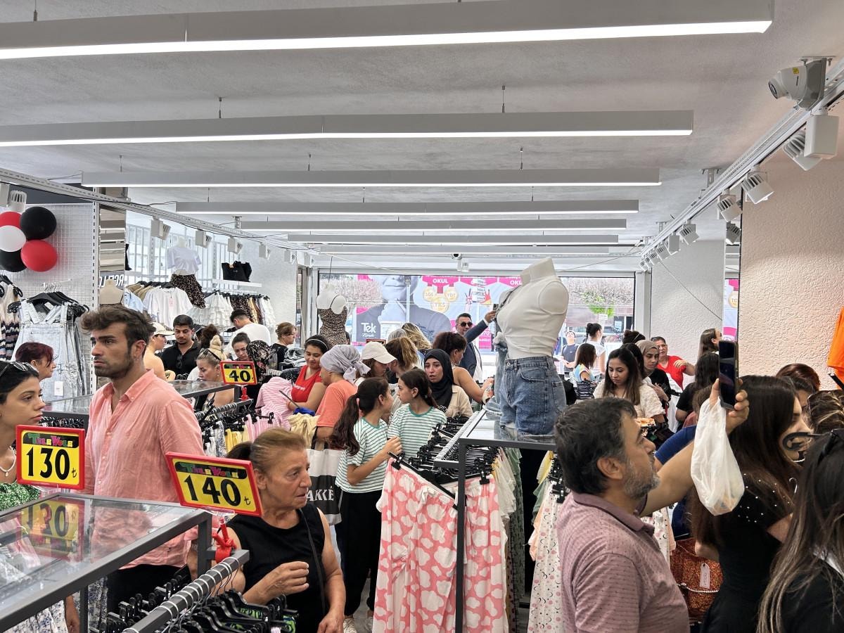 Depremden etkilenen Hatay'ın İskenderun ilçesinde hayat her geçen gün normalleşiyor. Adana'da uzun yıllardır faaliyet gösteren Televole Mağazası, 9. şubesini ilçede depremden en çok etkilenen yerlerden olan Savaş Mahallesi'nde açtı. Saat 10.00'da açılan mağazadaki indirimli kıyafetleri almak için kadınlar sabahın 6'sında sıraya girdi. Kurdele kesiminin ardından kepenklerin kaldırılmasıyla birlikte kadınlar mağazaya adeta akın etti. Bu sırada birçok kadın indirimli kıyafetleri almak için birbirleriyle yarıştı.