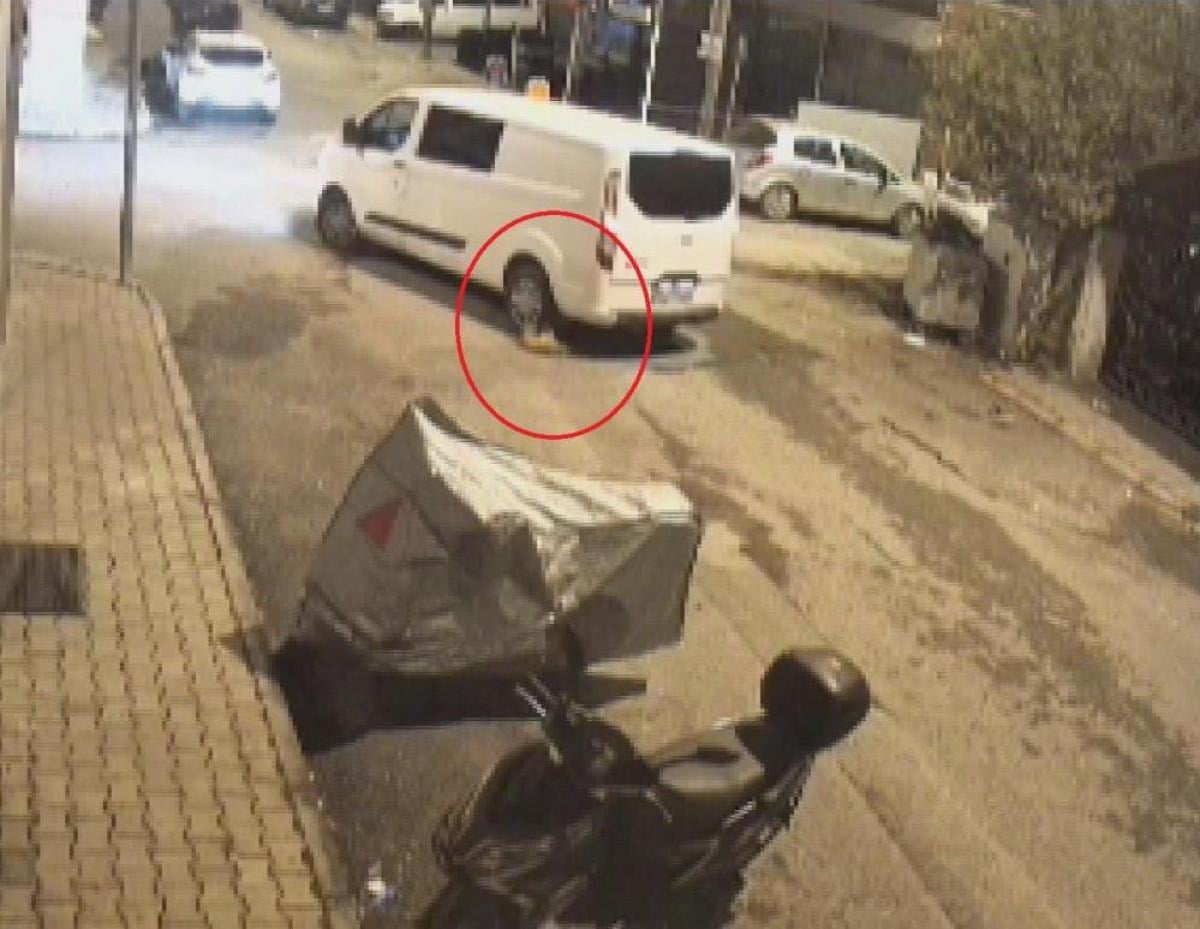 Olaydan birkaç saat sonra minibüsün ezdiği kedinin telef olduğu öğrenildi. O anlar bölgedeki güvenlik kameralarına saniye saniye yansıdı.