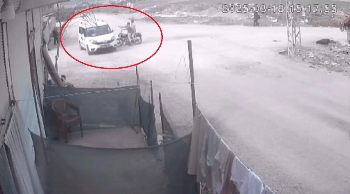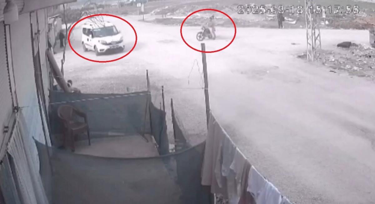 Hatay'ın Reyhanlı ilçesinde, cadde üzerinde ilerleyen motosiklet, dönüş yapmak isteyen hafif ticari araçla çarpıştı.