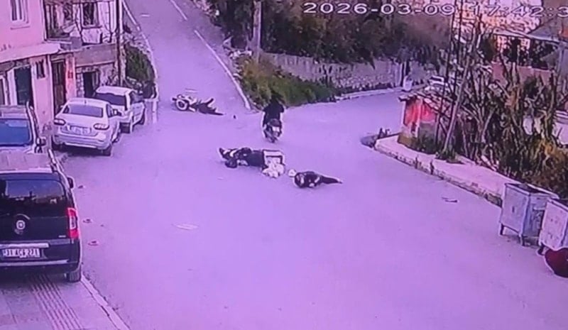 İskenderun ilçesinde iki motosikletin karşılıklı çarpışması sonucu 3 kişi yaralandı. Kaza anı güvenlik kamerasına yansıdı.