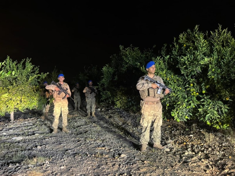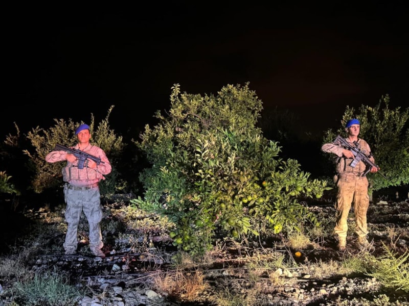 Hatay'ın Erzin ilçesinde narenciye hasadı öncesi hırsızlık vakalarına karşı jandarma ve komando timleri tarafından önlem alındı.