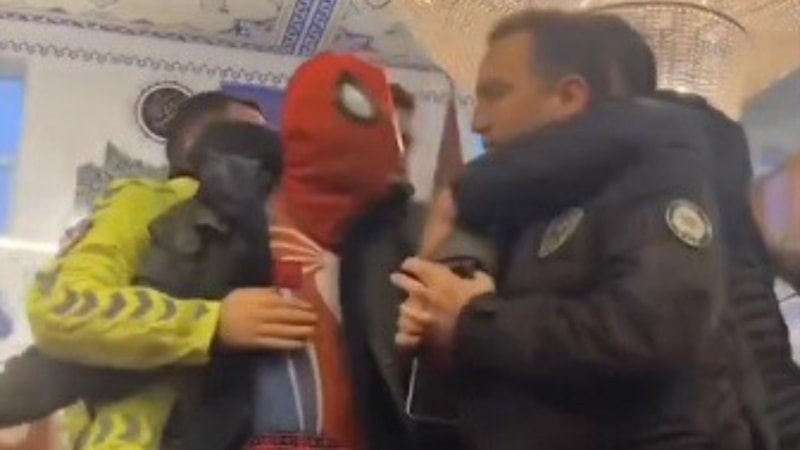 İzmir'den yola çıkarak İskenderun'a gelen Ayaz Koç isimli vatandaş, namaza 'Örümcek Adam' kostümüyle katıldı.