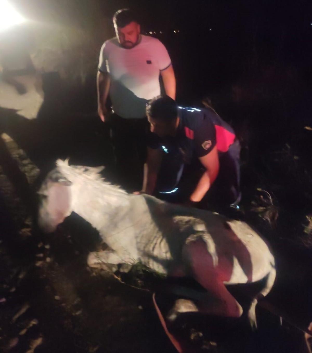 İhbarla olay yerine sevk edilen Büyükşehir Belediyesi itfaiye ekipleri, vinç yardımıyla eşeği bulunduğu yerden çıkararak sahibine teslim etti.