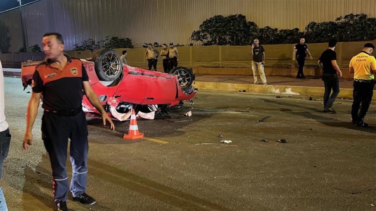 - Kazada, otomobil kaldırımda yürüyen 4 kişiye çarptıktan sonra devrildi.