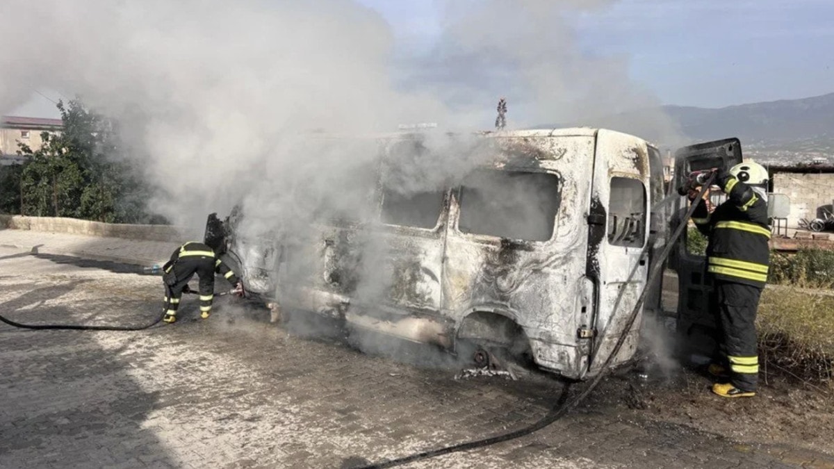 Yangın, itfaiye ekiplerinin müdahalesiyle söndürülürken minibüs kullanılmaz hale geldi.