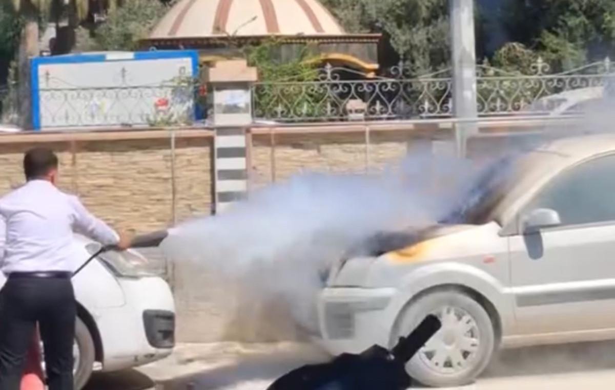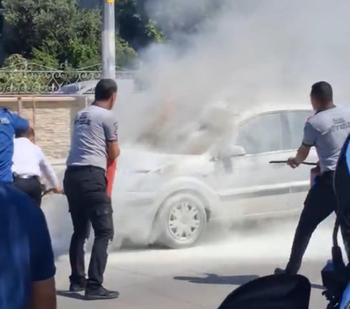 Kısa sürede aracı saran yangın, çevredeki vatandaşlarda paniğe neden oldu.