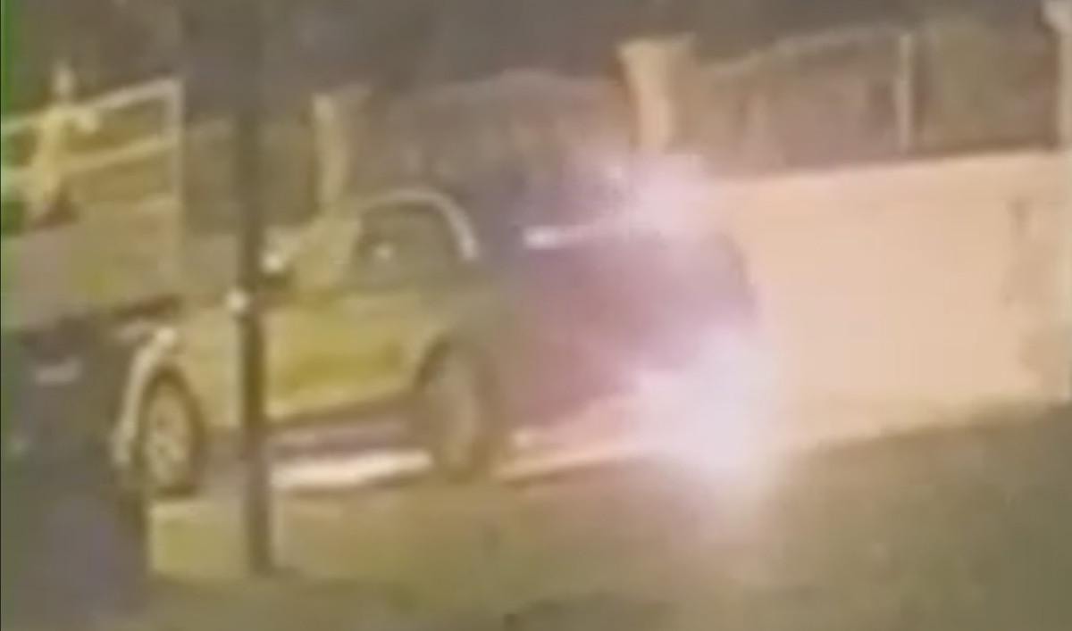 Öte yandan, otomobilin kundaklanma anı çevredeki bir iş yerinin güvenlik kamerasına yansıdı.